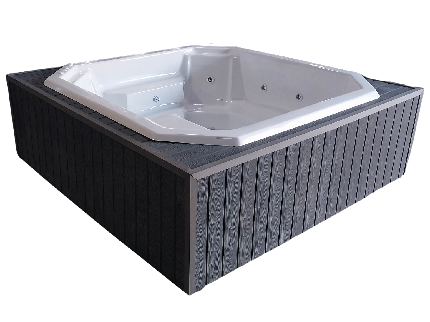 All of our Jacuzzis are vacuum-formed using superior sanitary-grade acrylic, certified to meet International ISO 9002 standards. This ensures a high-quality product that is easy to clean, scratch-resistant, and boasts a stunning glossy finish. Products we are rightly proud of.